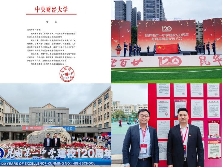 潮迎百廿,昆华正茂。10月18日上午,昆明市第一中学建校120周年教育高质量发展大会成功举办。中央财经大学云南招生工作组成员、保险学院保险系副主任王吉元、保险学院学生工作办公室主任燕东应邀参会,并开展招生宣传活动。