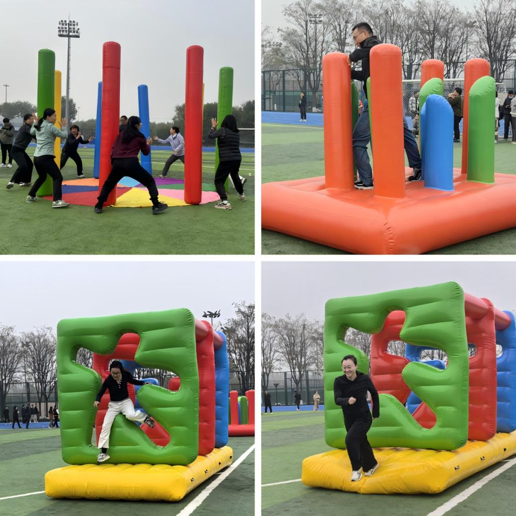在充满挑战的“障碍越野”中,老师们灵活地穿越一个个障碍,展现了出色的身体协调性和敏捷度,用速度与技巧征服赛道。在“不倒森林”项目中,大家围成一圈,全神贯注,通过快速的移动和默契的交接,共同守护着“森林”的屹立不倒,深刻体验了信任与专注的力量。