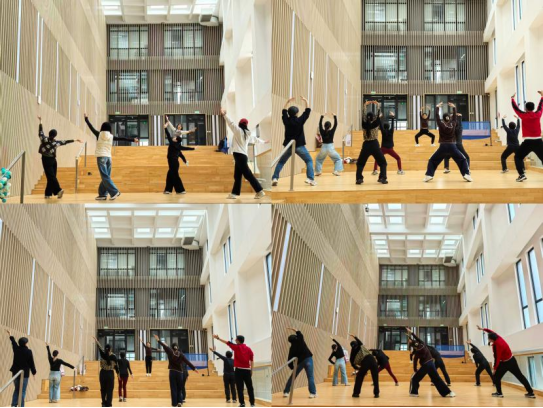 该活动依托学院健康角、“葆心驿站”与“以体强心”辅导员工作室,自上学期推出后便深受教职工喜爱,成为大家日常工作中的健身新选择。学院结合教职工工作节奏,创新打造“集中练+随时练”的工间操模式,将传统养生八段锦与现代高效Tabata训练相融合,让健身适配工作、融入日常。每周五中午工作前半小时,学院13号楼二层阶梯教室的集中工间操准时开展,教职工走出办公室、舒展筋骨;设立在五层的健康角则为大家提供随时锻炼的空间,与集中练习形成互补,既打破了运动的时空限制,又实现了传统养生与现代健身的双向融合,让锻炼变得轻松便捷。