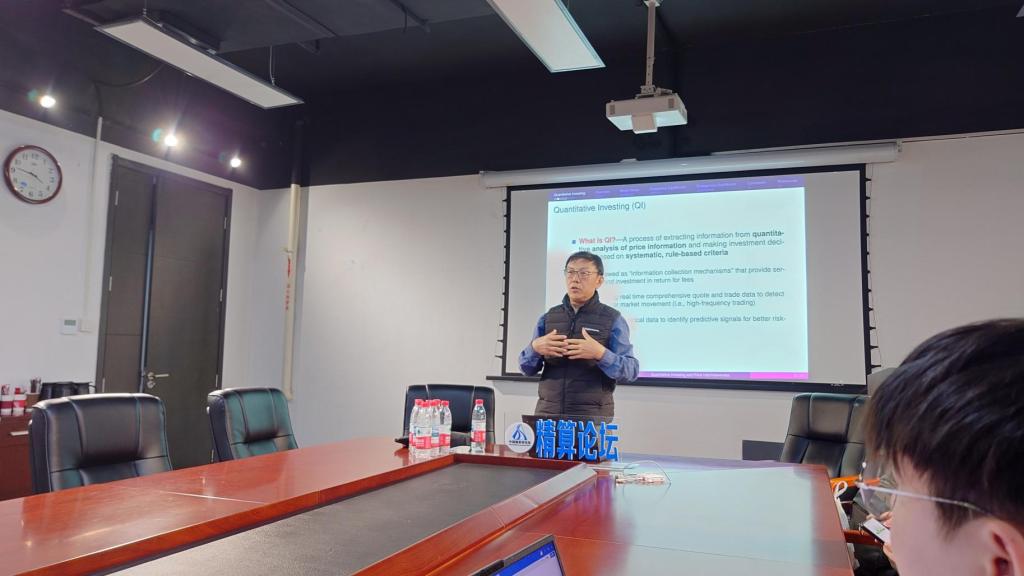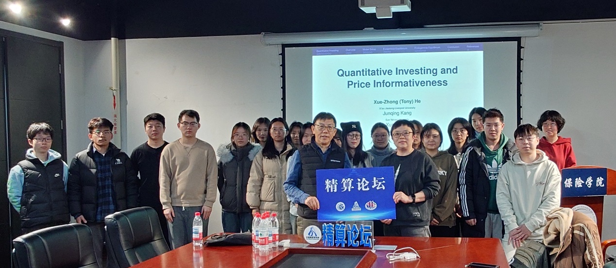 2025年12月18日下午,中国精算研究院第277期精算论坛在中央财经大学沙河校区13号楼215教室举行,西交利物浦大学金融系的何学中教授应郑敏教授的邀请做客本次论坛。何教授在资产定价及金融市场建模领域具有广泛的学术影响力,多项研究成果发表于国际顶尖期刊。何教授以Quantitative Investing and Price Informativeness为题,为我院师生带来了一场高水平的专题讲座。