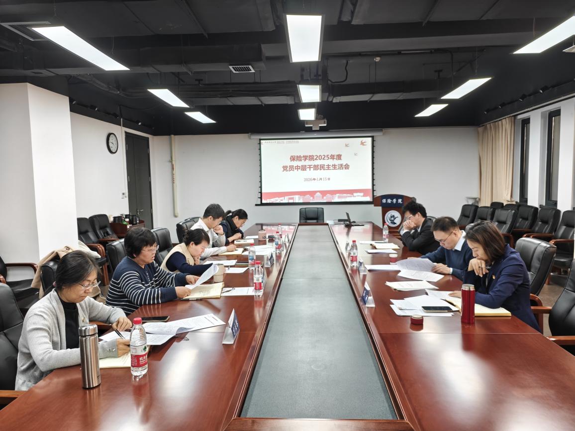 2026年1月15日,保险学院党委在沙河校区13号学院楼215会议室召开2025年度党员中层干部民主生活会。学校民主生活会联系指导组成员、学校办公室副主任薄璐参加会议,会议由学院党委书记吕丽主持。