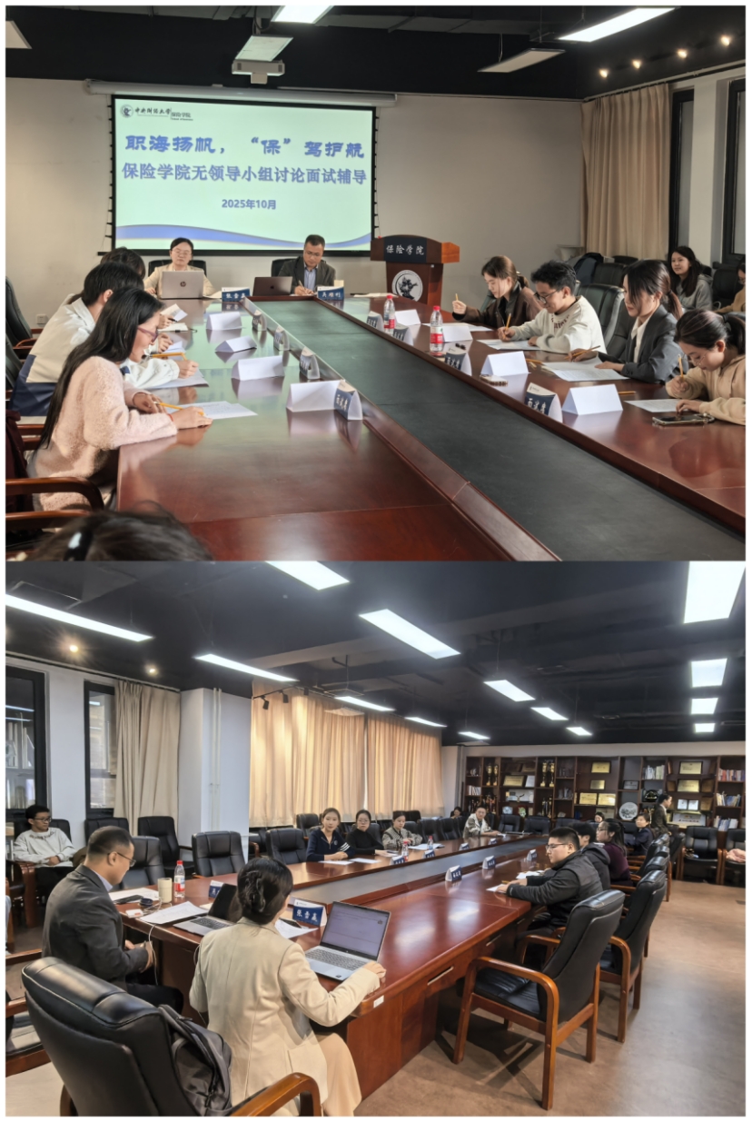 为进一步提升学生求职能力,帮助学生做好职业生涯规划,提升求职面试能力,2025年10月17日,保险学院举办“职海扬帆 ‘保’驾护航”无领导小组讨论面试辅导活动在学院13号楼215会议室进行。活动邀请中邮人寿保险股份有限公司人力资源部校园招聘经理张雪赢、智联招聘人才发展中心高级测评顾问吴顺利作为指导点评嘉宾,保险学院的党委副书记徐芳,保险学院2026届本科生、研究生30余人参加此次活动。活动由保险学院团委书记、2022级本科生辅导员吴蓓主持。