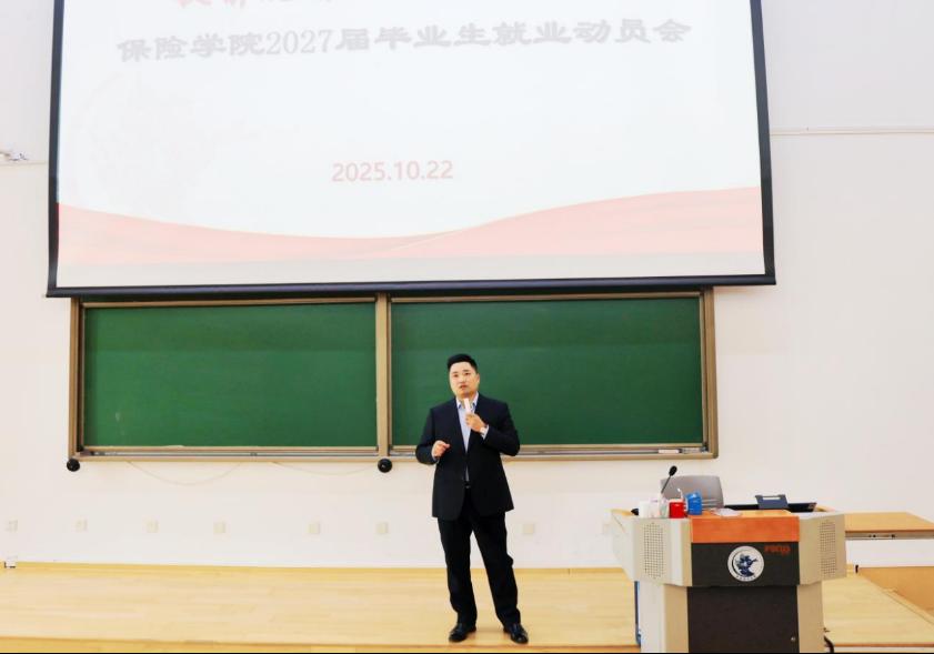 为有效帮助2027届本科毕业生明确未来发展方向,提前做好就业准备,10月22日,保险学院在学院11号楼123教室召开了以“提前规划 职引未来”为主题2027届毕业生就业启动会。保险学院2027届全体本科毕业生参加会议。会议由保险学院学生工作办公室主任燕东主持。
