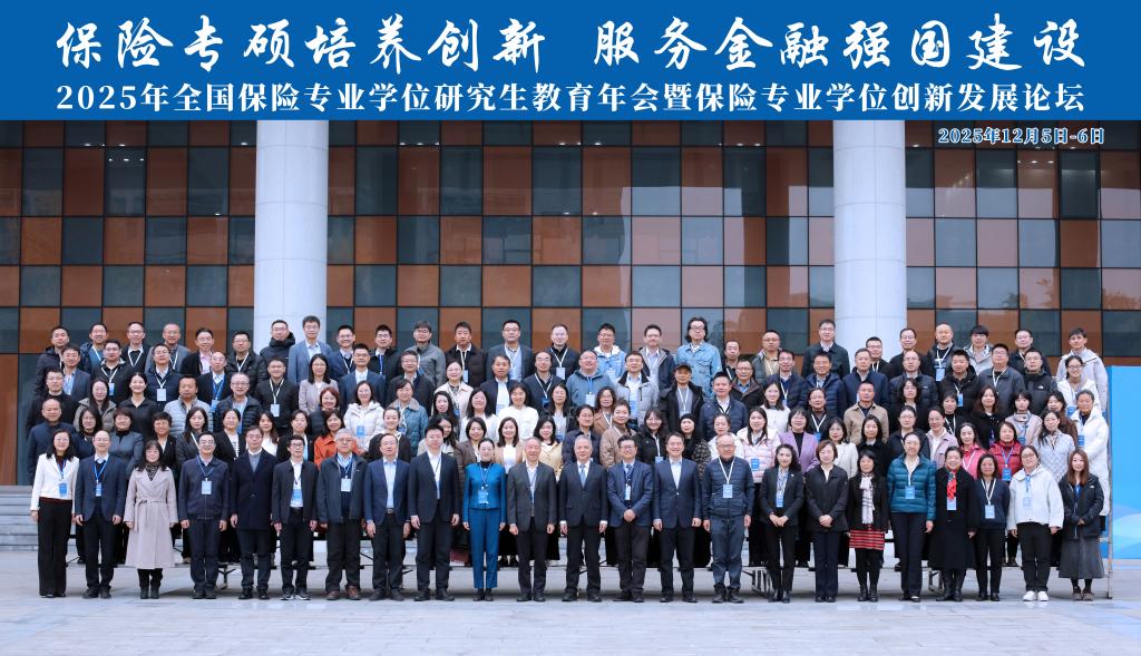 12月5日至6日,2025年全国保险专业学位研究生教育指导委员会(以下简称保险教指委)委员工作会议和2025年全国保险专业学位研究生教育年会暨保险专业学位创新发展论坛在四川省成都市西南财经大学举办。保险教指委副主任委员、保险学院、中国精算研究院李晓林教授,保险教指委秘书长、保险学院、中国精算研究院院长周桦教授,副院长郑苏晋教授,保险学院校外导师、原富德生命人寿总精算师杨智呈先生,风险管理与保险系系主任马冰副教授,精算科学系廖朴副教授以及保险专硕教指委秘书处王维老师应邀参加了会议。