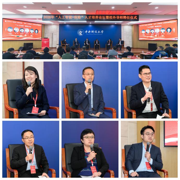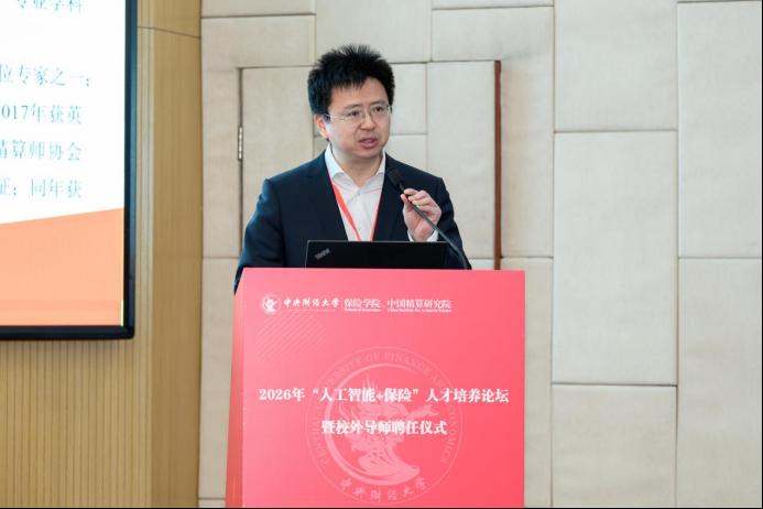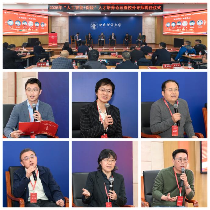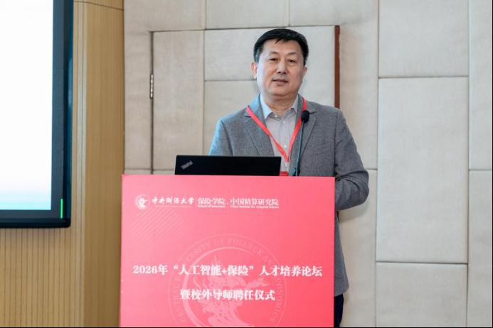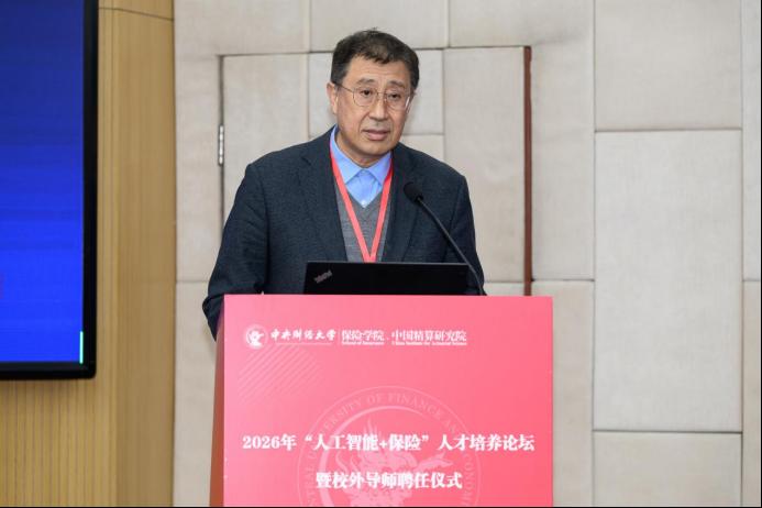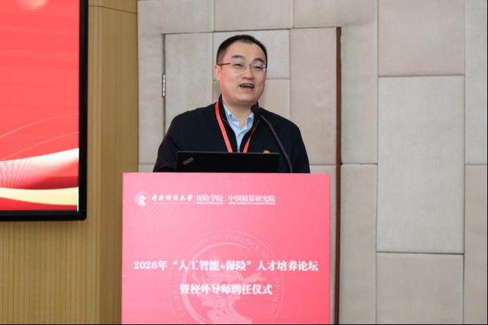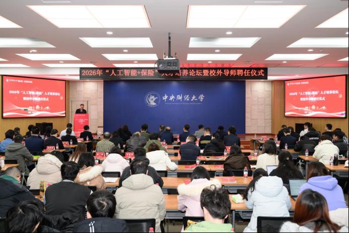 2026年1月10日,中央财经大学保险学院2026年“人工智能+保险”人才培养论坛在学院南路校区主教楼114报告厅举办。中央财经大学党委常委、副校长李涛教授出席会议,保险学院近40位校外导师及120余位师生参加了本次论坛。论坛分为主旨演讲与“人才培养”“案例研发”圆桌论坛两个阶段,分别由保险学院、中国精算研究院副院长郑苏晋教授和王丽珍教授主持。