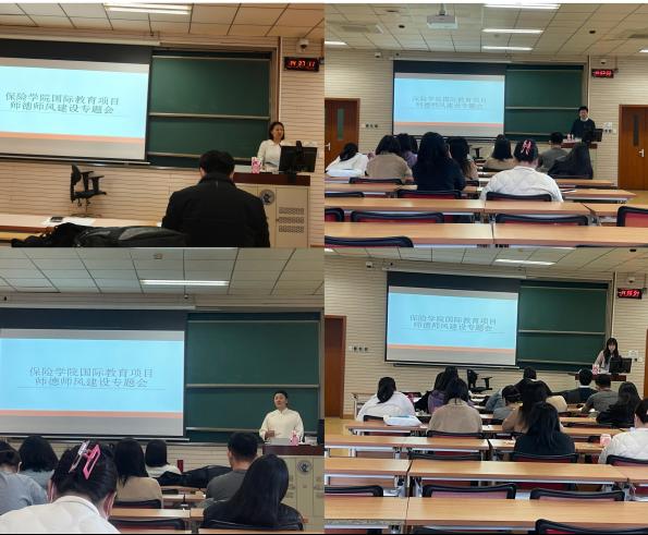 2026年3月16日下午,我院国际教育项目在学院南路校区主教学楼218教室召开师德师风建设专题会。保险学院党委书记吕丽,保险学院、中国精算研究院院长、国际教育项目主任周桦,国际教育项目办公室主任郭秀坤、副主任姜虹宇及全体教师参会,会议由姜虹宇主持。