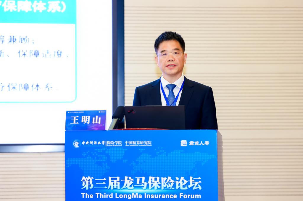 王明山以“完善中国特色医疗保障制度、以北京实践赋能中国式现代化”为题作主旨演讲。他提出,完善我国医疗保障制度要重点抓好五方面工作:锚定全民保障定位,彰显制度优势;完善多层次医疗保障体系,破解发展不均衡问题;深化“三医”联动改革,释放医保战略价值;推进智慧医保建设,提升治理现代化水平;坚持民生为本,打造高效暖心的服务体系。他表示,当前我国医保制度面临人口老龄化、基金可持续等挑战,同时也迎来多层次保障、三医联动、数字化转型等重要机遇。他充分肯定中财在医疗保险、风险防控、基金管理等领域的研究实力,指出青年学子是医保事业发展的新生力量。他希望各界携手发力,共同推动中国特色医疗保障制度不断完善,更好守护人民群众健康。
