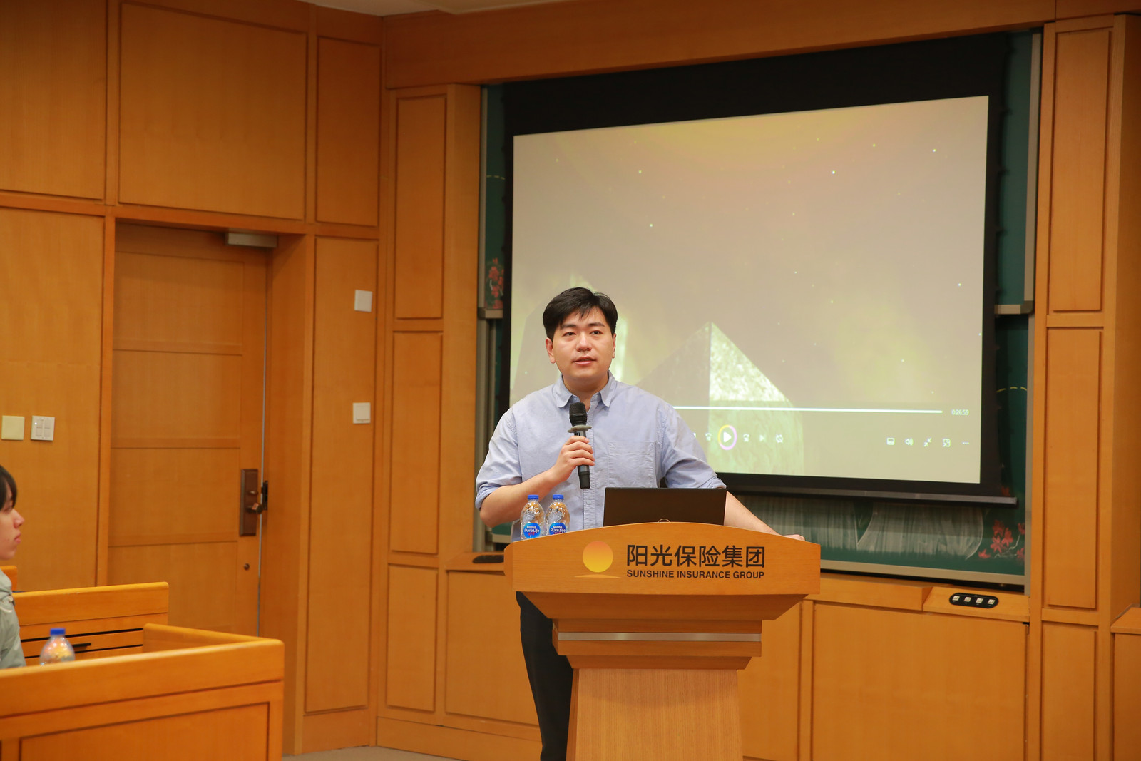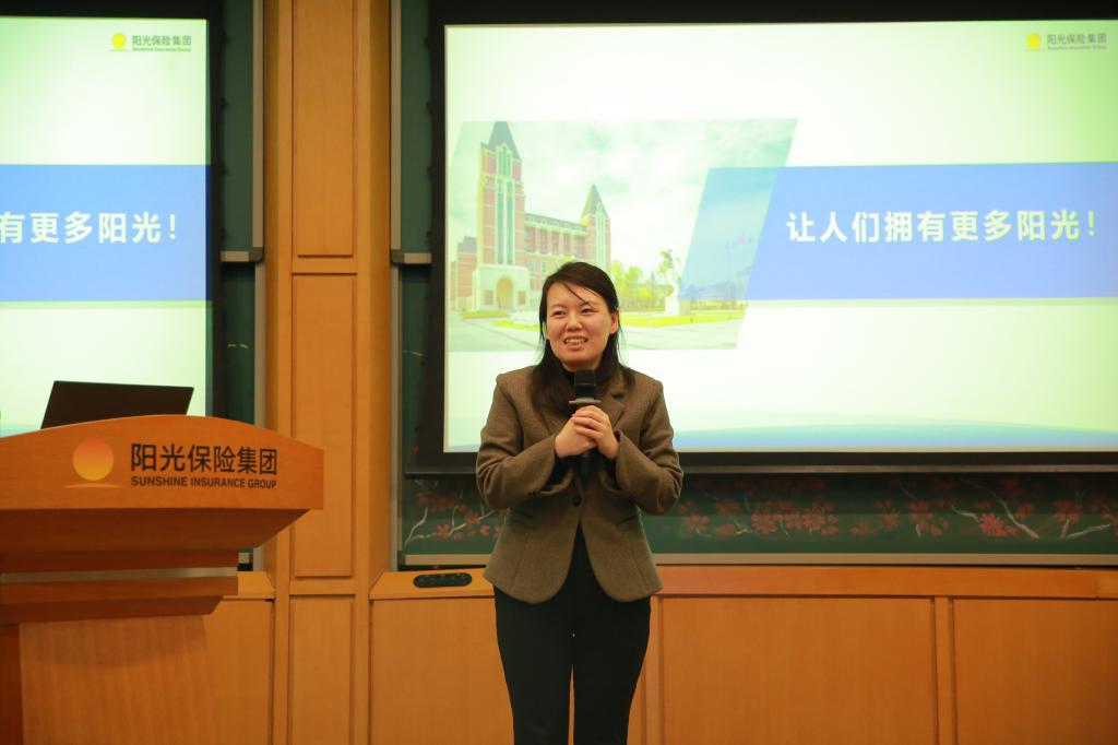 参观结束后,专家讲座环节在阳光大学堂综合管理处处长邱子阳的主持下开始。师生首先观看了阳光保险集团介绍短片,深入了解了集团创始人张维功董事长艰苦创业的历程以及他对阳光文化的不断探索与追求。影片生动呈现了阳光保险从无到有、从小到大、从弱到强的发展脉络,并展现了其在业务布局上所实现的高质量跨越与突破。