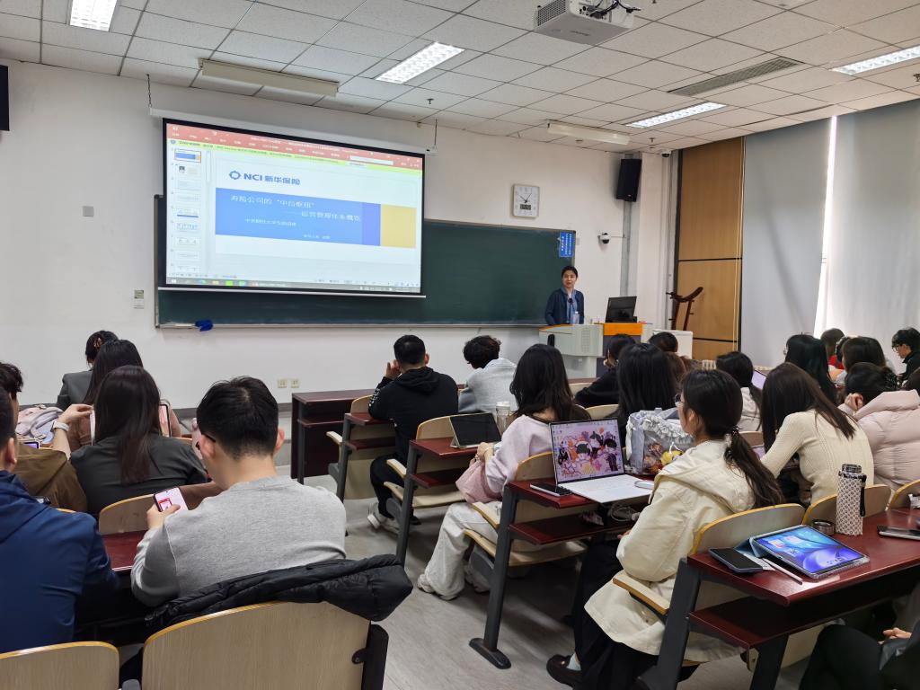 2026年3月26日,保险学院《保险运营实务》课程特邀新华人寿保险公司核保核赔部副总经理赵敏女士,做客“风险管理与保险论坛(2026年)”并带来第三讲专题讲座——《寿险公司的“中台枢纽”——运营管理体系概述》。本次活动同时作为保险学院建院20周年的系列活动之一,吸引部分本科生、硕士研究生到场学习,讲座由保险学院副院长王丽珍主持。