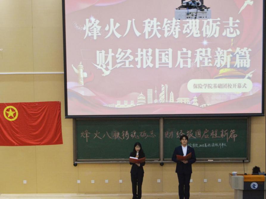 为进一步传承中国人民抗日战争暨世界反法西斯战争胜利80周年所承载的伟大抗战精神,深入学习贯彻党的二十届四中全会精神,提升团员青年政治素养与服务能力,2025年10月29日,由保险学院团委主办的“烽火八秩铸魂砺志,财经报国启程新篇”基础团校开幕式,在沙河校区学院13号楼125教室成功举办。活动邀请到了保险学院党委副书记徐芳老师、团委书记吴蓓老师等嘉宾开展分享,其中吴蓓老师带来题为“弘扬伟大抗战精神,汇聚民族复兴力量”的“菁彩团课”,学院180余名学生积极参与此次活动,活动由院团委组织部干事尤玥、胡安东主持。