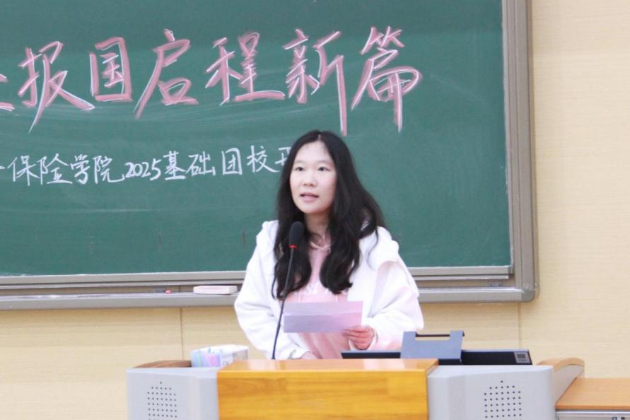 保险学院党委副书记徐芳老师发表了热情洋溢的开场致辞。徐芳老师首先对本届基础团校的顺利召开表示祝贺,并对全体学员的到来表示热烈欢迎。随后,她清晰指出了参加团校学习对青年团员成长成才的重要意义,并鼓励全体学员珍惜此次学习机会,在团校的平台上锤炼品格、增长才干,努力成长为一名有理想、敢担当、能吃苦、肯奋斗的新时代青年,为学院和学校的发展贡献青春力量。
