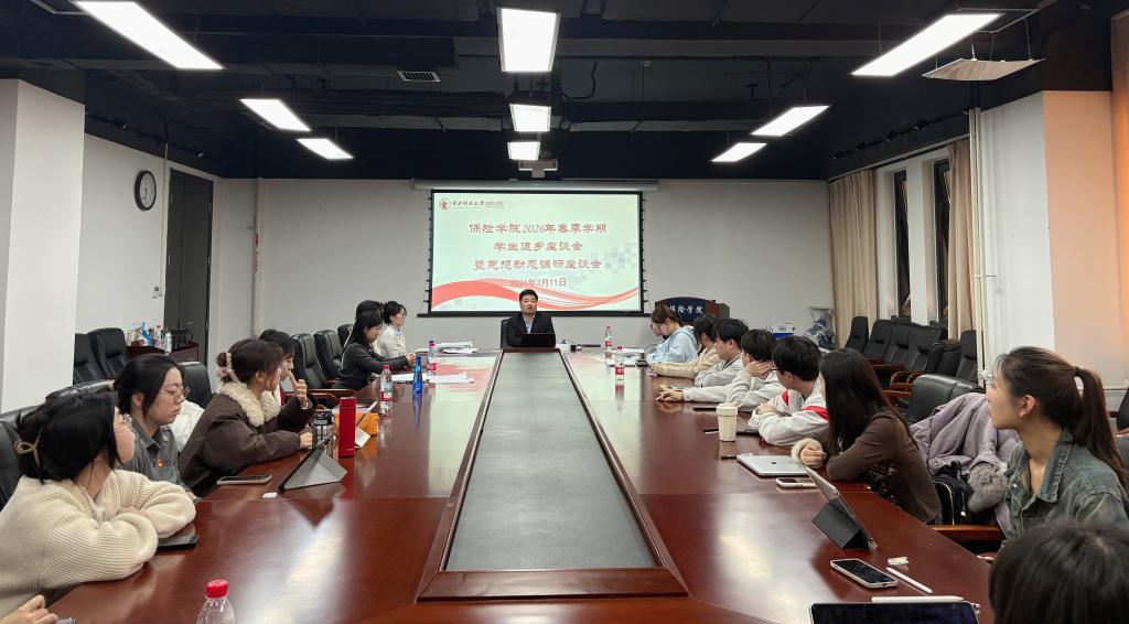 为深入落实立德树人根本任务,进一步精准把握青年学子思想脉搏,3月11日下午,保险学院在学院13号楼215会议室召开2026年春季学期学生返乡思想动态调研座谈会。保险学院各年级辅导员及学生代表参加会议,会议由学院学生工作办公室主任燕东主持。