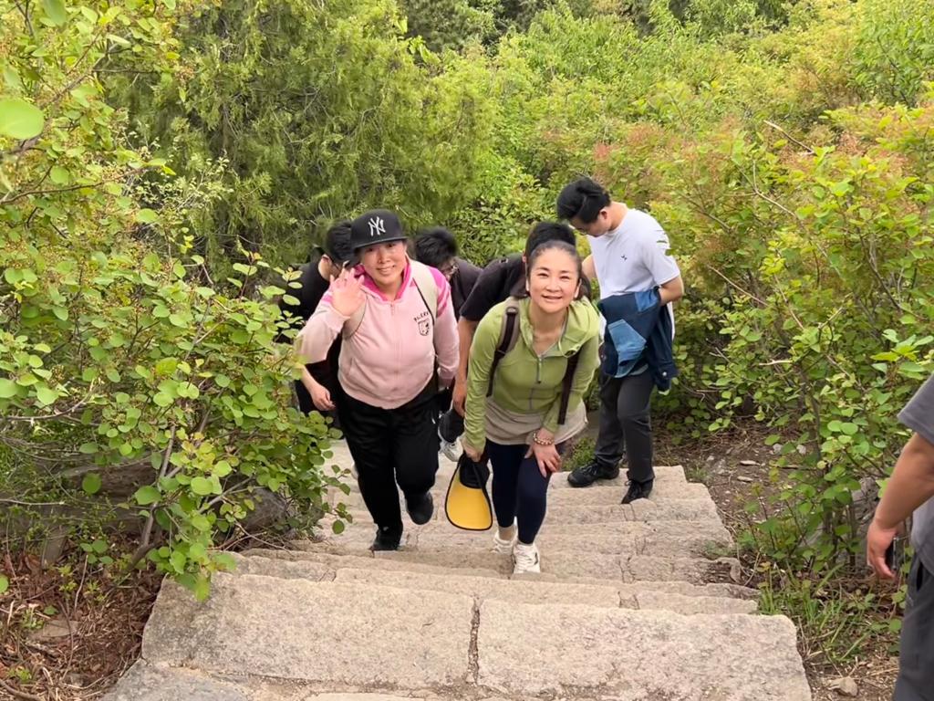 山路蜿蜒而上,春风拂过新绿的枝梢,林木掩映间笑语不断。校友们结伴慢行、细语家常,时而驻足休息,远眺京城春色。行至半山亭,众人暂歇闲谈。从校园轶事到行业洞察,从业界动态到人生体悟,不同世代的校友展开深度对话。老校友们以切身经验为青年校友答疑解惑,青年校友带来了更新鲜的思考与视角。山路虽远,情谊更深,这场“行走中的对话” 不仅让加深校友间互相了解,也进一步拉近了校友情感与心灵的距离,体现出我校薪火相传、携手奋进的光荣传统。